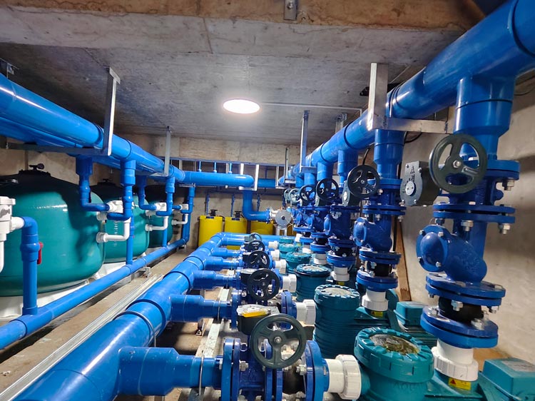 走進海口某高端小區(qū)會所泳池,AQUA愛克的系列泳池設備——包括泳池水泵、過濾砂缸、中壓紫外線殺菌器、水質(zhì)監(jiān)控儀和投藥泵等,正協(xié)同運轉(zhuǎn),默默守護著水質(zhì)潔凈與安全。