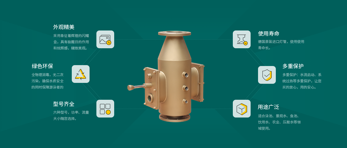 適合于泳池、溫泉SPA、中水處理、飲用水、魚池、景觀池、農業、壓艙水等領域使用。